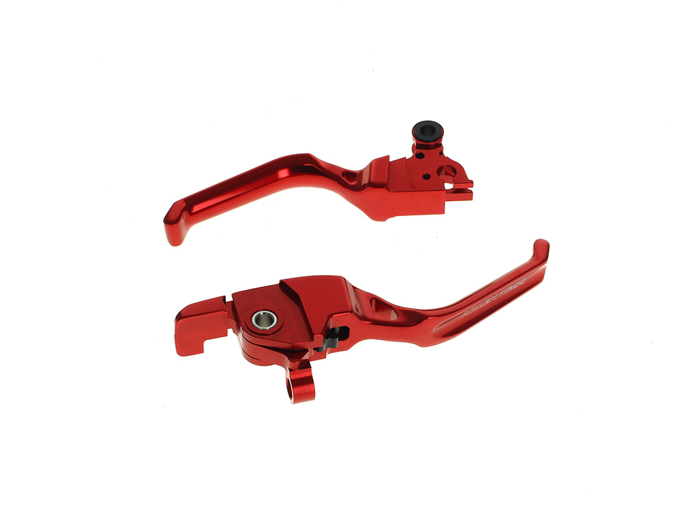 * Custom hand levers that are forged from billet aluminum and then CNC machined into form