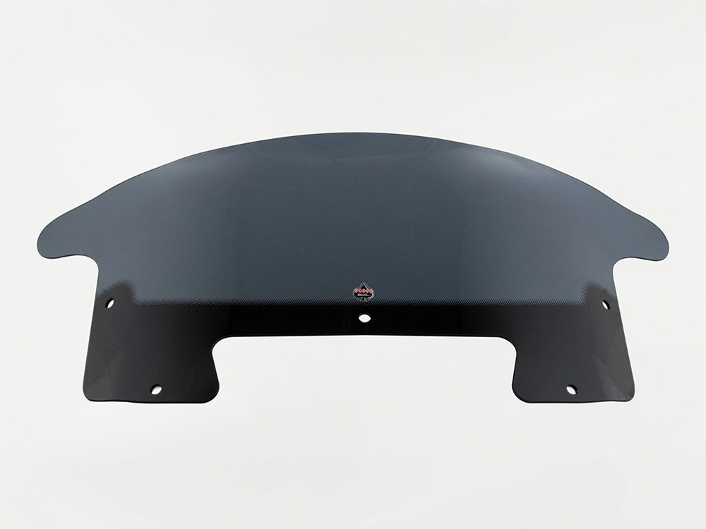 Klock Werks Flare is the ORIGINAL windshield of its kind, and has surprised riders everywhere with not only how great it looks, but also with how well it performs. The innovative design features in.hipsin. at th e outer edge of the shield that re-route the air to add downforce to the front of the bike, improving stability vs riding with a stock shield. The in.flipin. at the top of the Flare is designed to kick the air up and back as in.cleanin., less turbulent air for the rider and passenger. Made from hard-coated polycarbonate material for added durability.