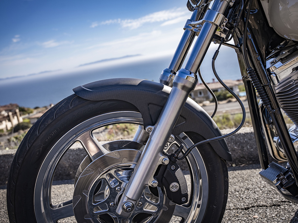SADDLEMEN SEATS Carbon Front Fender – Matte Finish. Fits Narrow Glide Dyna 1991-2005, FXR 1982-1994 & Sportster 1973-2021